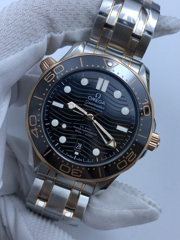 (준비완료/특급배송/)NO.709/VS공장 오메가 씨마스터 다이버 300 로즈골드 콤비 블랙다이얼 브슬 러버밴드 > 쇼핑