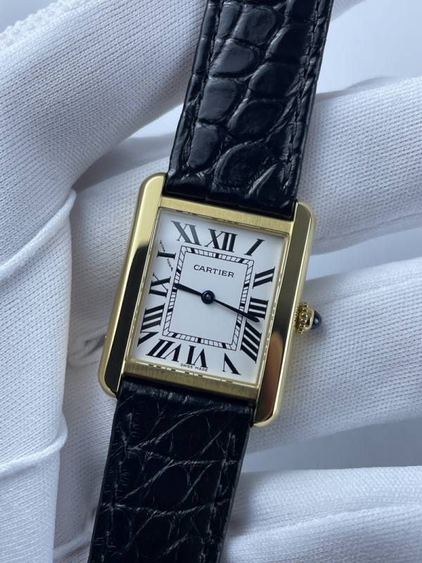 (준비완료/특급배송)NO.1308/AF공장 까르띠에 탱크솔로 24 옐로우골드금장 화이트다이얼 가죽스트랩